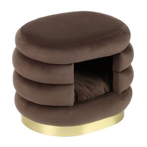 Bársonyszövet puff, kisállatházzal, barna - TRIOPETS