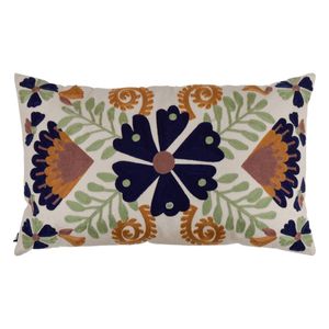 Díszpárna, hímzett növénymintás, szövet, többszínű -