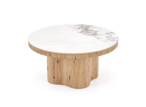 Dohányzóasztal, 80 cm, fehér márvány / natúr - TONNEAU