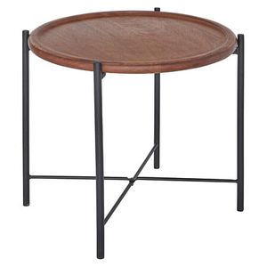 Lerakóasztal, kerek, mangófa, barna, fekete fém lábakkal - BAMAKO