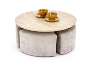 Dohányzóasztal puffokkal (4 db), 80 cm, travertin / világos bézs - NOUGAT