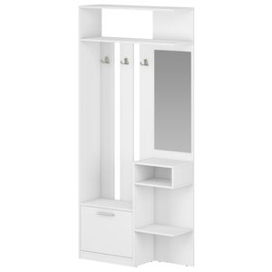 Előszoba szekrény tükörrel és fogassal 92x205x30 cm fehér - JULIETTE