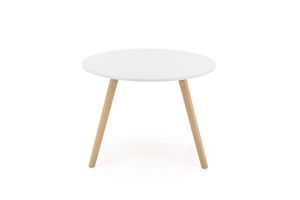Kihúzható étkezőasztal, 102-142 cm, asztallap: fehér, lábak: méztölgy - GARANCE