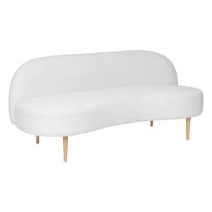 Pad, háttámlával, buklé szövet, fehér, fa lábakkal