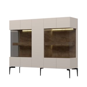 Vitrines komód, 5 ajtóval, fém lábakkal, kasmír és tölgy szinü - AMANDA